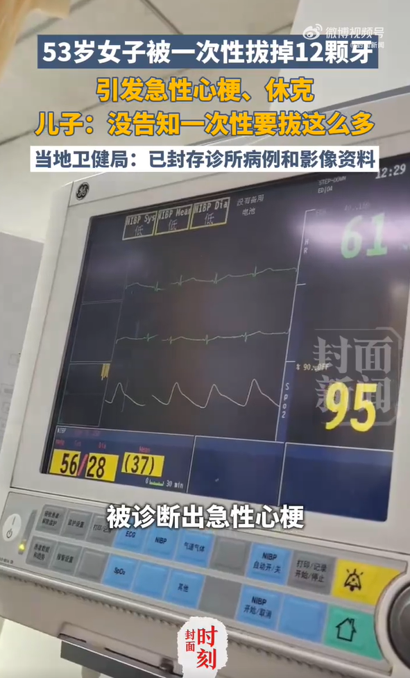 然而当麻醉生效后,医生竟一次性将她上颌的12颗牙齿全部拔除。术后,患者突发心梗和休克。