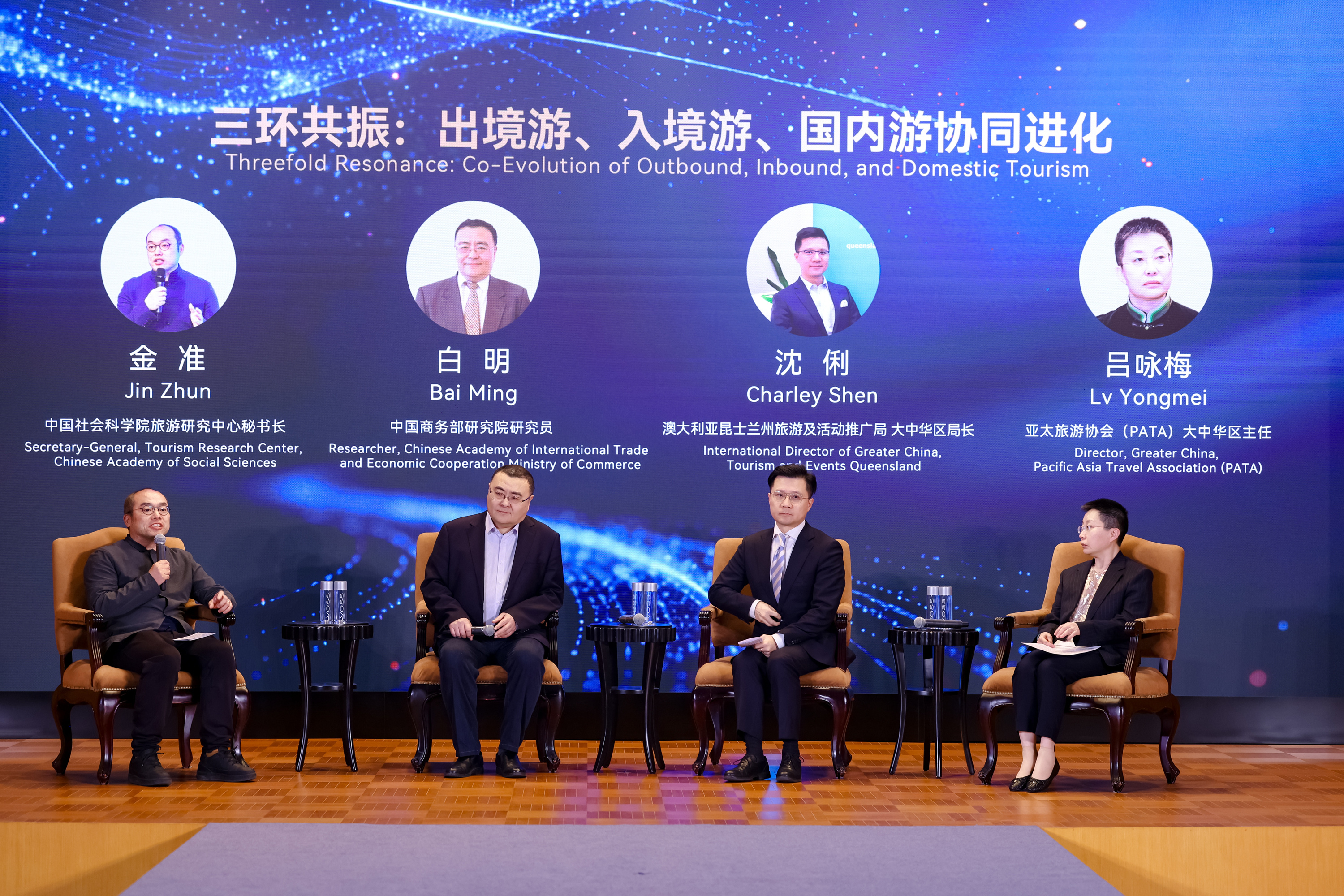 中国智慧出行不仅服务中国,更在走向全球。“三环共振:出境游、入境游、国内游协同进化”由中国社会科学院旅游研究中心秘书长金准主持。中国商务部研究院研究员白明、澳大利亚昆士兰州旅游及活动推广局大中华区局长沈俐、亚太旅游协会(PATA)大中华区主任吕咏梅参与讨论。