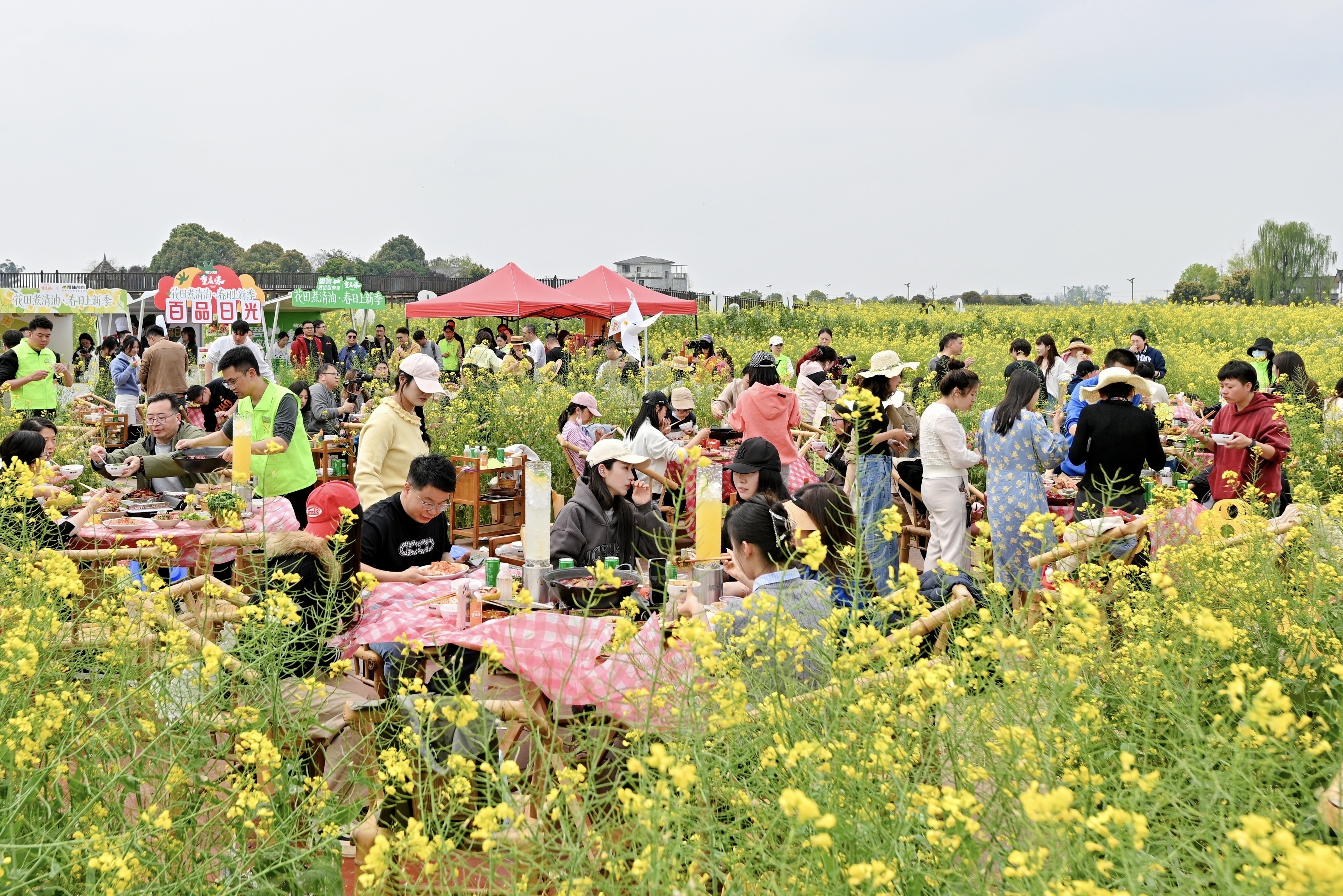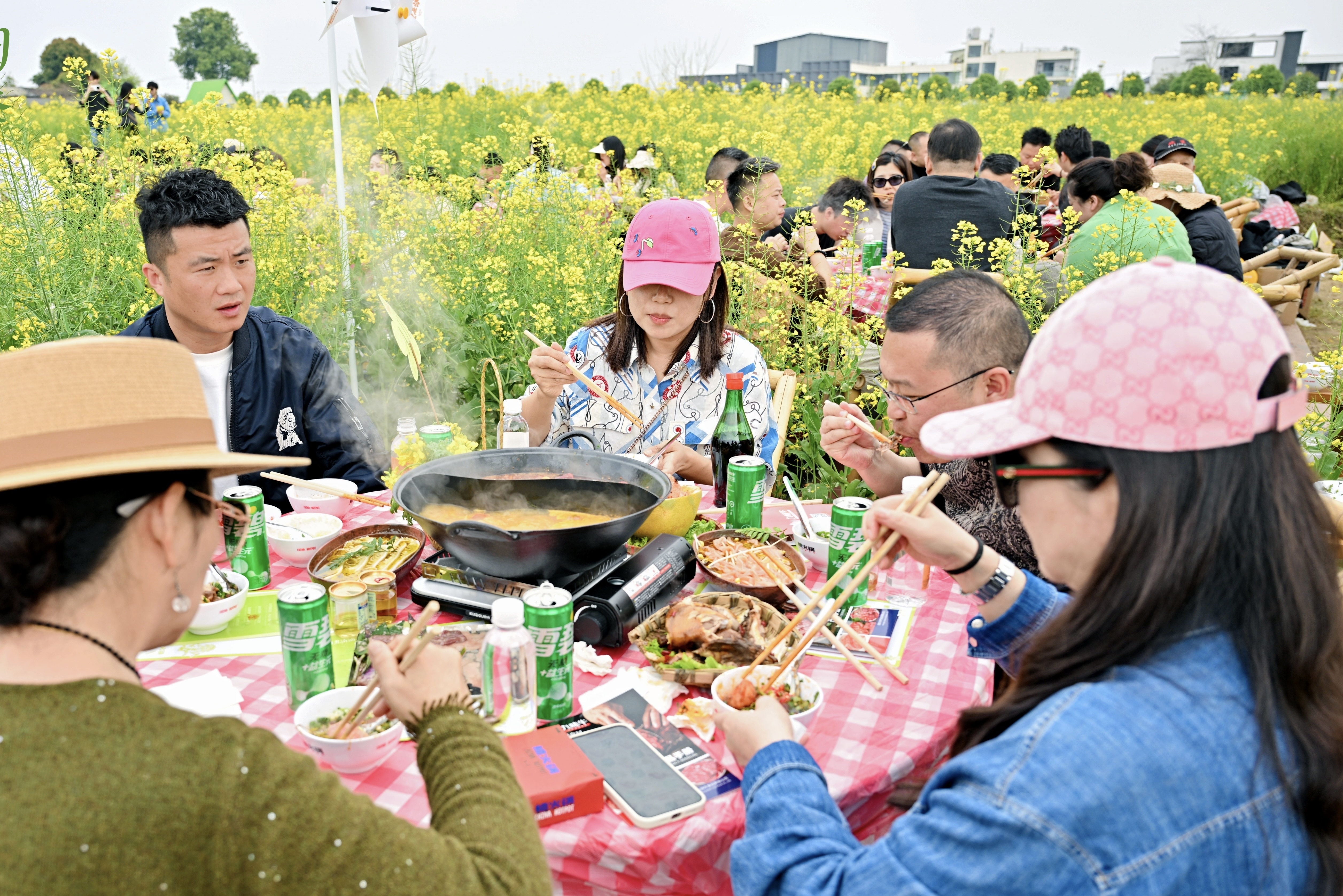 日前,楠火锅举办“花田煮清油”春日上新活动,将百人火锅宴搬进广汉高坪菜花公园花海核心区,以“火锅+花海”的创新形式,开启了一场“春的约会”。