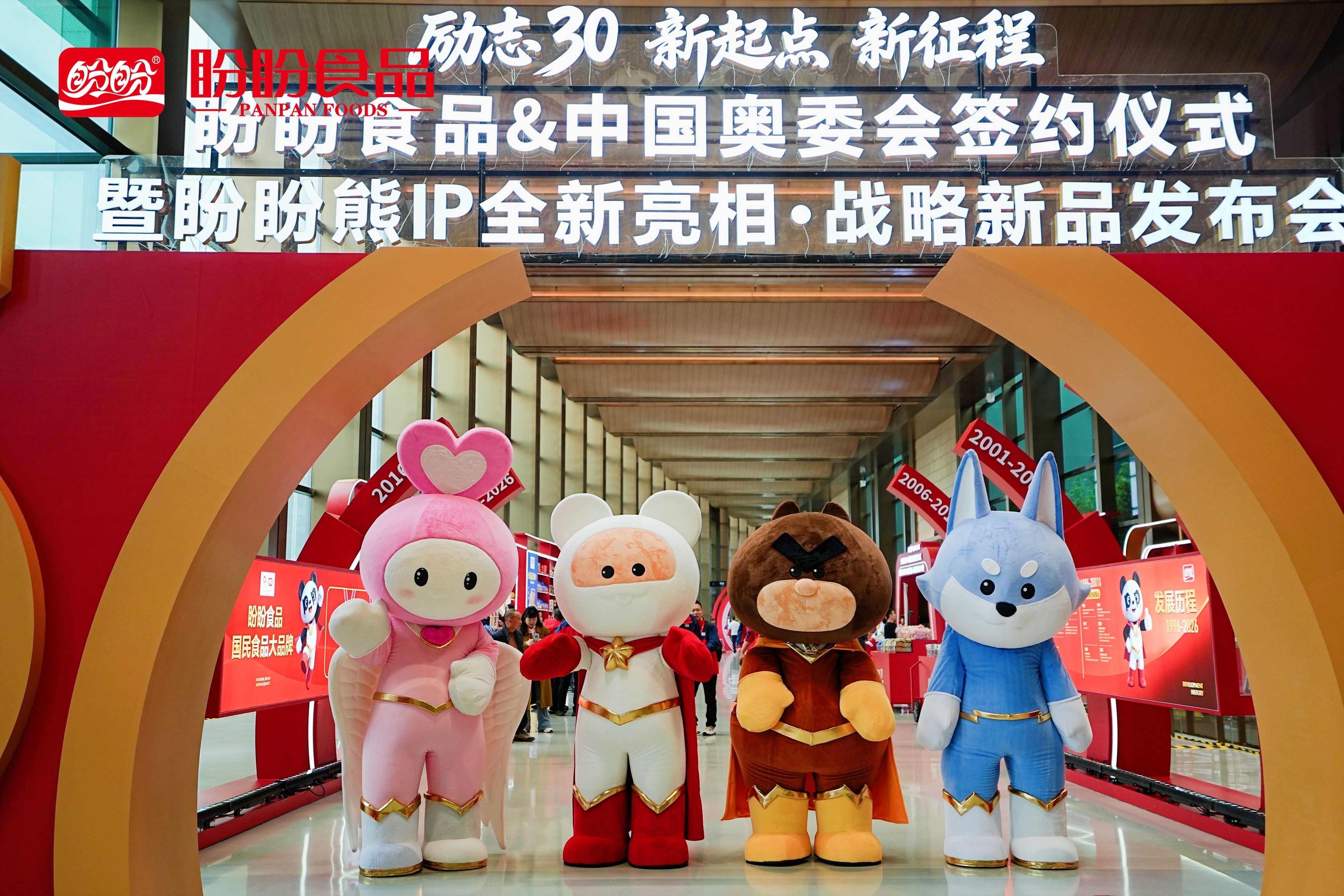 日前,盼盼食品集团与中国奥委会在蓉举行签约与授牌仪式,同时迎来品牌创立三十周年盛典。现场重磅推出了品牌 IP “盼盼熊” 全新升级、全系战略新品首发两大核心动作。